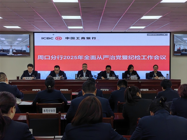 2月6日,工行周口分行召開2025年全面從嚴治黨暨紀檢工作會議,學習貫徹黨的二十屆三中全會、二十屆中央紀委四次全會精神,貫徹落實總行、省行2025年全面從嚴治黨暨紀檢工作會議精神,總結2024年全面從嚴治黨和紀檢工作,部署2025年從嚴管黨治行工作任務。市行黨委班子成員,高級經理及中層管理人員參加會議。