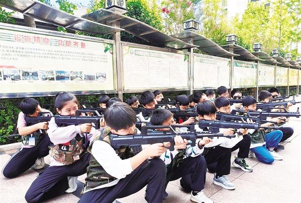 近日,沈丘縣志遠小學的學生們在教練指導下手握訓練用槍,進行射擊訓練。今年以來,為豐富學生的課余生活,全面推進素質教育,沈丘縣立足學生發展需求,精心打造了涵蓋科技、體育、藝術、生活實踐等多個領域的社團活動體系。