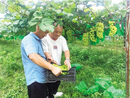 近日,鹿邑縣衛真街道谷堆洼社區華恩種植合作社的葡萄園迎來采摘期。翠綠的藤蔓間,一串串飽滿圓潤、色澤誘人的葡萄綴滿枝頭,在陽光下熠熠生輝,猶如綠色寶石般璀璨奪目,散發出誘人的果香,令人垂涎欲滴。