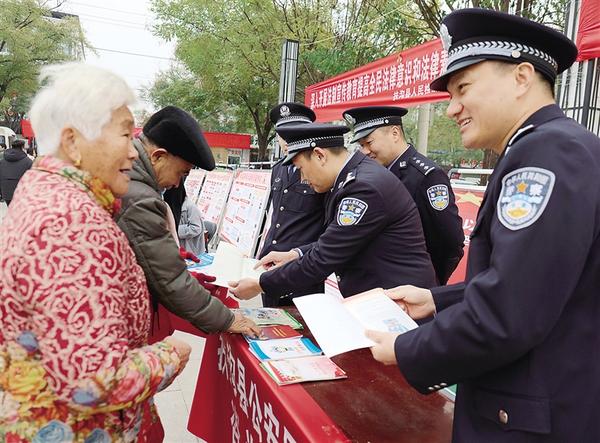 民警向群眾發放宣傳資料。2024年12月1日~12月7日是第七個“憲法宣傳周”。為大力弘揚憲法精神,營造崇尚憲法、學習憲法、宣傳憲法、遵守憲法、維護憲法的濃厚氛圍,連日來,扶溝縣公安局積極組織民警到大程文化廣場開展集中宣傳活動。