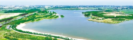 近日,天氣晴好,引黃調蓄湖波光粼粼,倒映著藍天白云,景致如詩如畫。