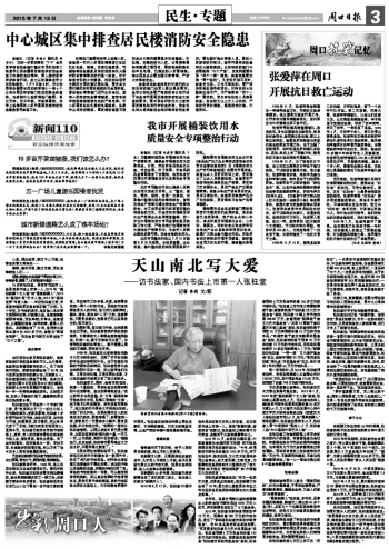 當記者在北京見到張柱堂時,他的容貌和記者的想象差別不大。從外表看,他就是位普通而慈祥的老人,見了誰都笑呵呵的,即便在新疆生活了50年,張口還是地道流利的家鄉(xiāng)話。見到家鄉(xiāng)人,張柱堂激動的心情溢于言表,他拿出自己做的《周口日報》剪貼本讓我們翻閱,談起家鄉(xiāng)近年來取得的可喜變化,他都能一件一件清晰準確地道來。此刻我方知,在老人平靜的外表下,蘊藏著的是怎樣熾熱的家鄉(xiāng)情。